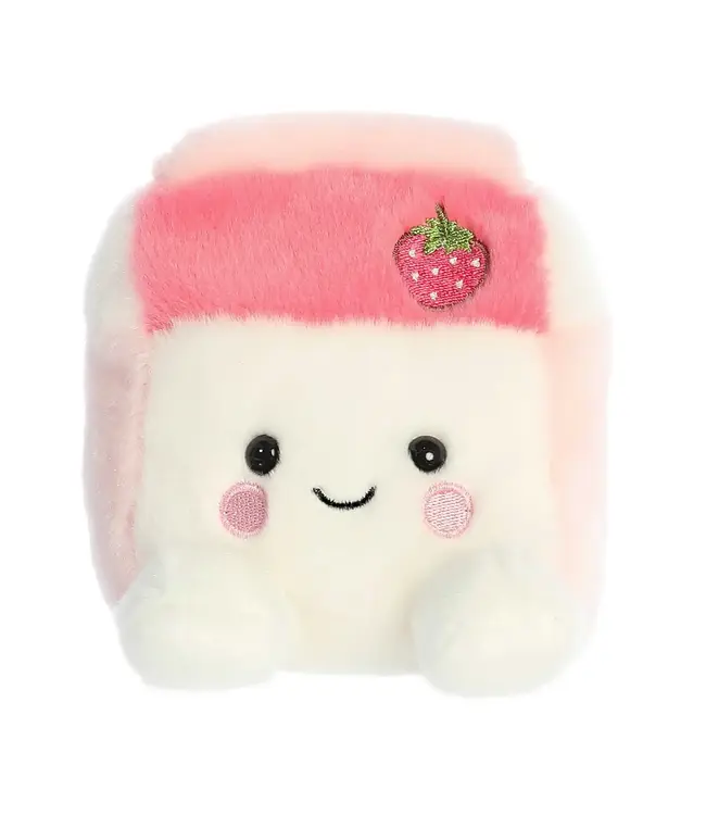 Introducing Fresa the Plush Strawberry Milk, the delightful addition to Palm Pals by Aurora World! Measuring approximately 5 inches, Fresa features creamy white and pale pink hues, topped with a darker pink crown and a charming embroidered strawberry detail. With shiny black eyes, an embroidered smile, and rosy cheeks, Fresa is irresistibly soft and fluffy.