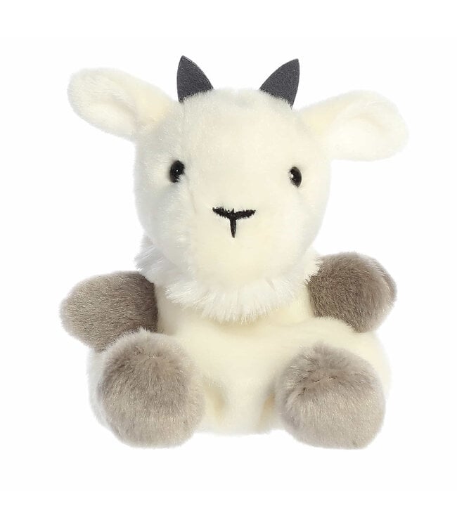 Colors: Soft snowy white body with grey accents and little horns for a classic goat look