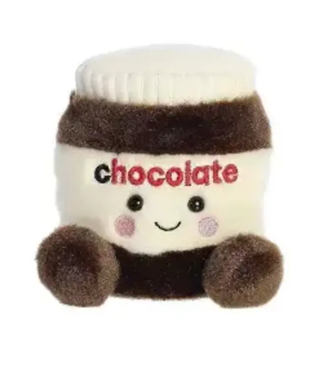 Design: Plush shaped like a chocolate spread jar with embroidered label details and a cheerful smile