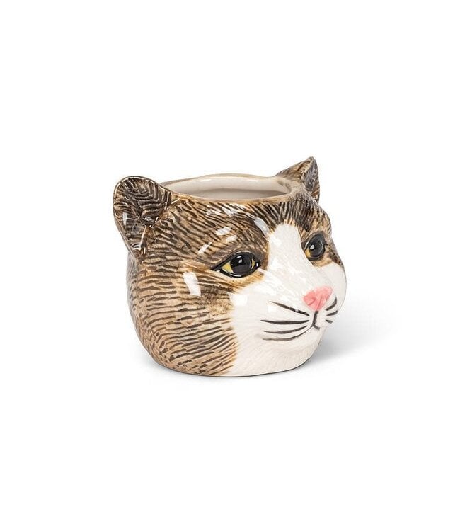 Measuring 2.5 inches in height with an opening size of 1 inch in diameter, this cute brown and white stoneware planter is both functional and fun. Whether placed on a windowsill, desk, or shelf, the Small Tabby Cat Planter is sure to brighten up any corner of your home.